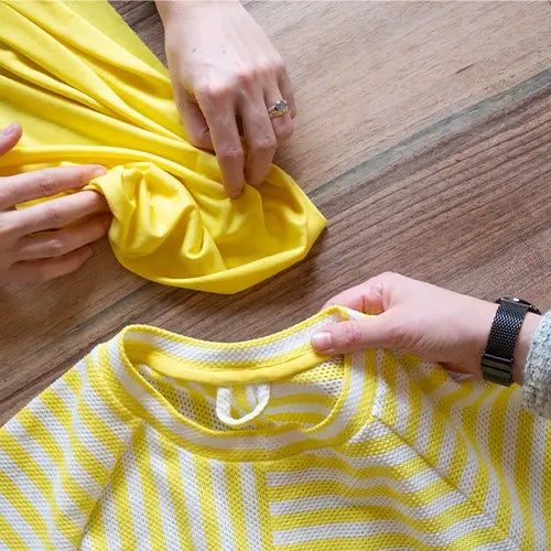 Um dir einen guten Eindruck davon zu geben, wie die Stoffe als fertiges Kleidungsstück aussehen könnten, vernähen wir einige davon immer selbst.